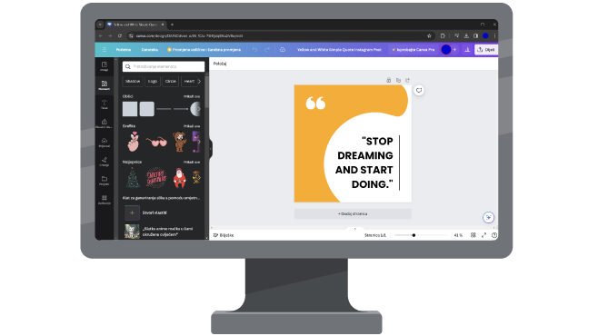Svaka čast dizajneru! Ako ti se sviđa ono što vidiš, vrijeme je da preuzmeš personalizirani predložak. U gornjem desnom kutu klikni na gumb "Dijeli", a zatim u padajućem izborniku "Preuzmi". Personalizirani predložak sada je spremljen na tvoj uređaj i spreman za objavu. Ako ti se svidio ovakav način personalizacije i želiš naučiti više o dizajnu, Google će ti biti najbolji prijatelj. Mnoštvo je kvalitetnih besplatnih uputa i edukacija o Canva alatu, uživaj u stjecanju nove vještine!